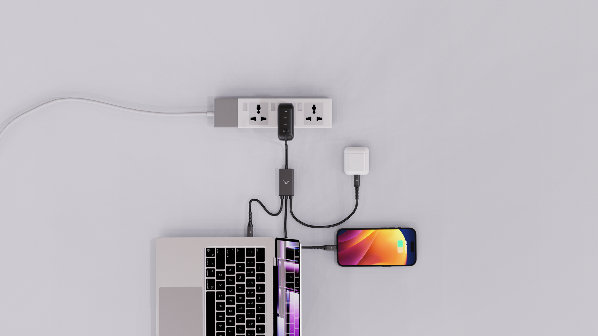 Hydra delivers up to 100W of power on a single Type-C output when used alone, ensuring that even power-hungry devices like laptops can be charged quickly.